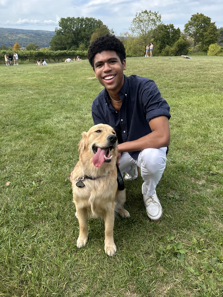(above) Zion poses with the Sigma Phi Epsilon house dog, Violet.
