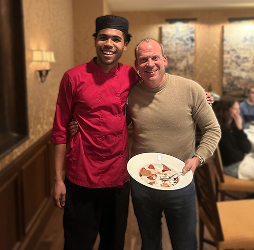 Zion said the highlight of this semester was having the honor of creating and executing a four-course dinner for the Dean of the Hotel School (Kate Walsh) and distinguished Cornell alumnus and industry leader (Alan Rosen) who co-owns the Junior’s restaurant chain known for their outstanding cheesecake.